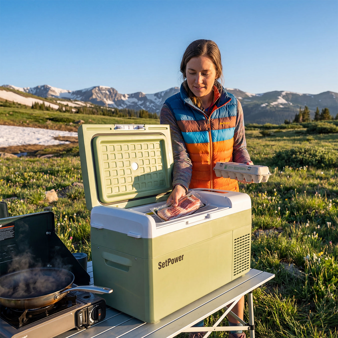 SetPower freezer offers true ice-free cooling. No ice needed means big yearly savings, plus reliable performance for camper