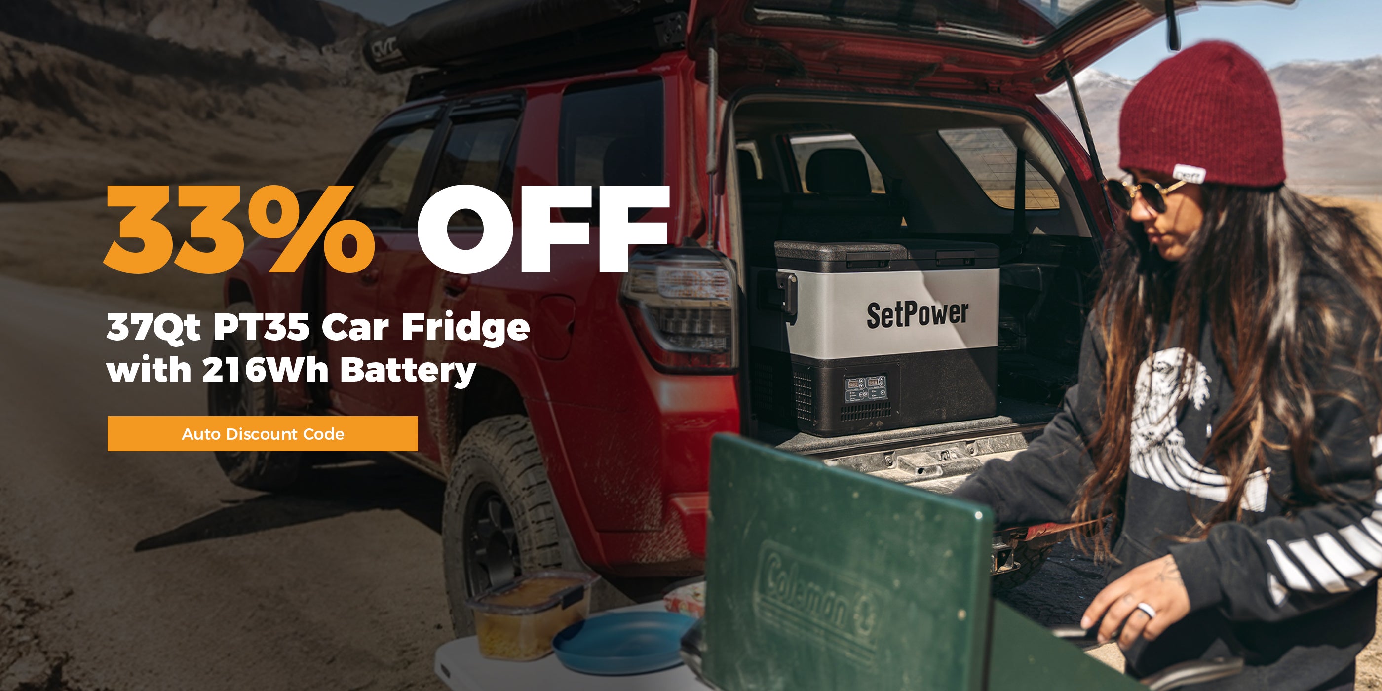 SetPower 12V fridge runs on ultra-low power, as low as 28W. A portable refrigerator freezer built for energy savings and long trips.