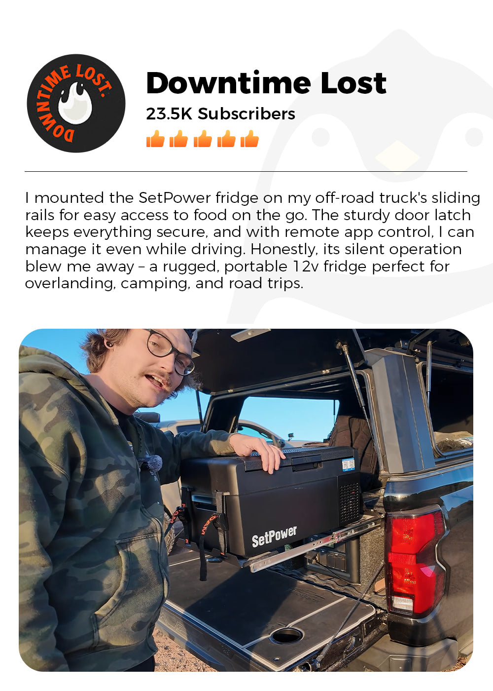 The Setpower RF30 has exceeded my expectations in every way. If you spend a lot of time camping, road‑tripping, overlanding, or just need a reliable 12V fridge/freezer for your vehicle, this unit is an absolute winner.
