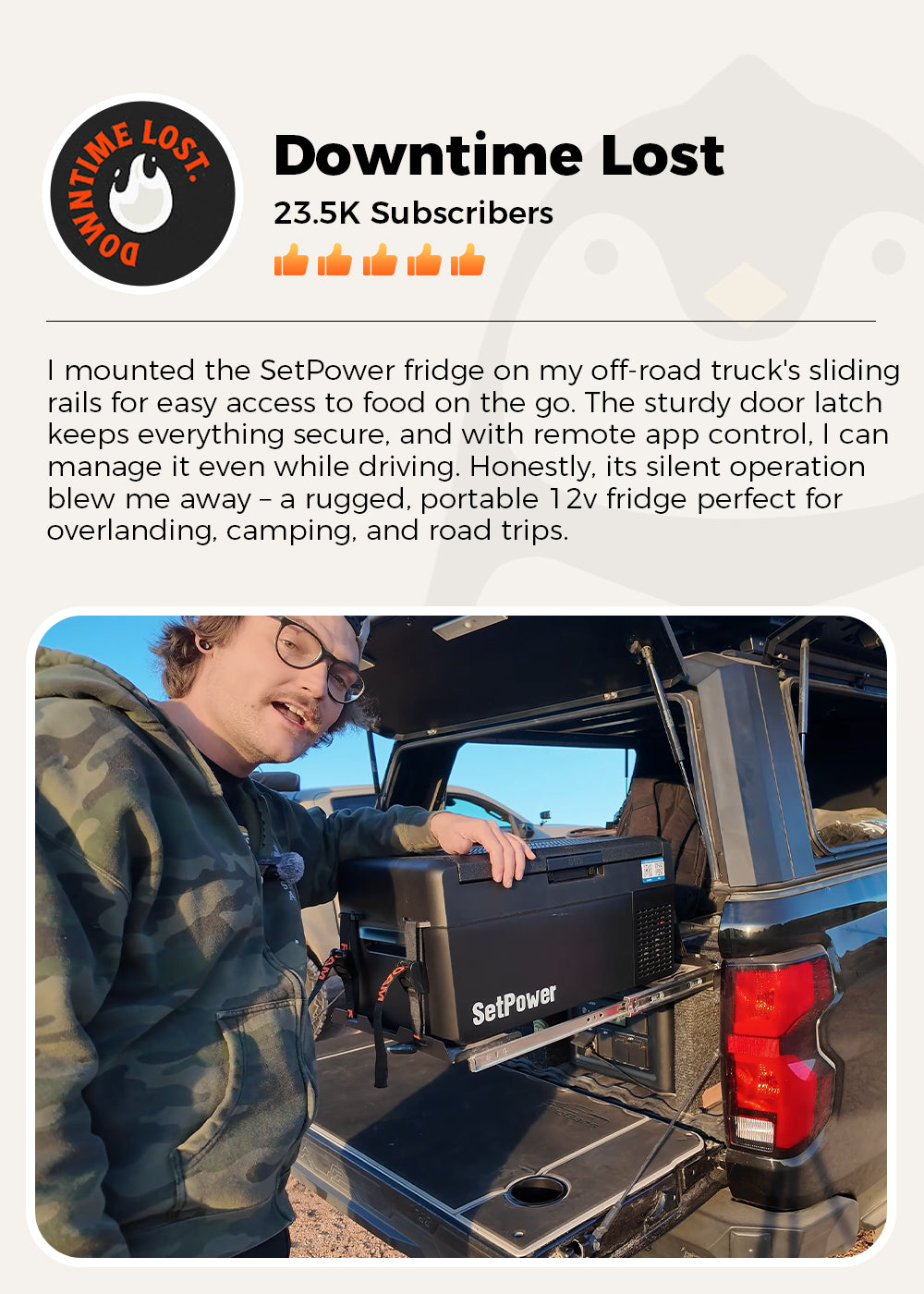 My family and I camp a lot. We have a popup tent camper that has a small fridge. We mainly use that fridge for food. As for drinks and other snacks we need access to, I bring my super expensive Ice cooler. I got tired of buying a bag of ice every day at the camp store to keep the drinks cold after all the opening and closing. I saw a fellow Pop up Camper showing off his SetPower cooler on youtube. When I saw the price and what it could do, I had to buy one.