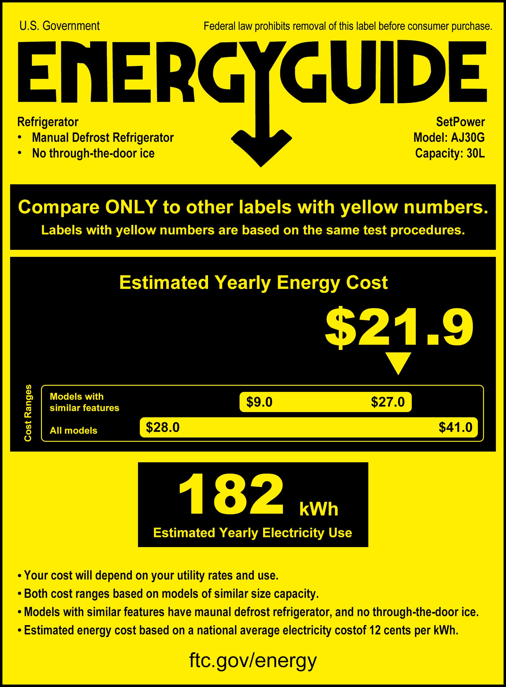 According to our lab report, the Setpower AJ30 12v refrigerator uses only 0.499 kw.h/24h - Low energy use.