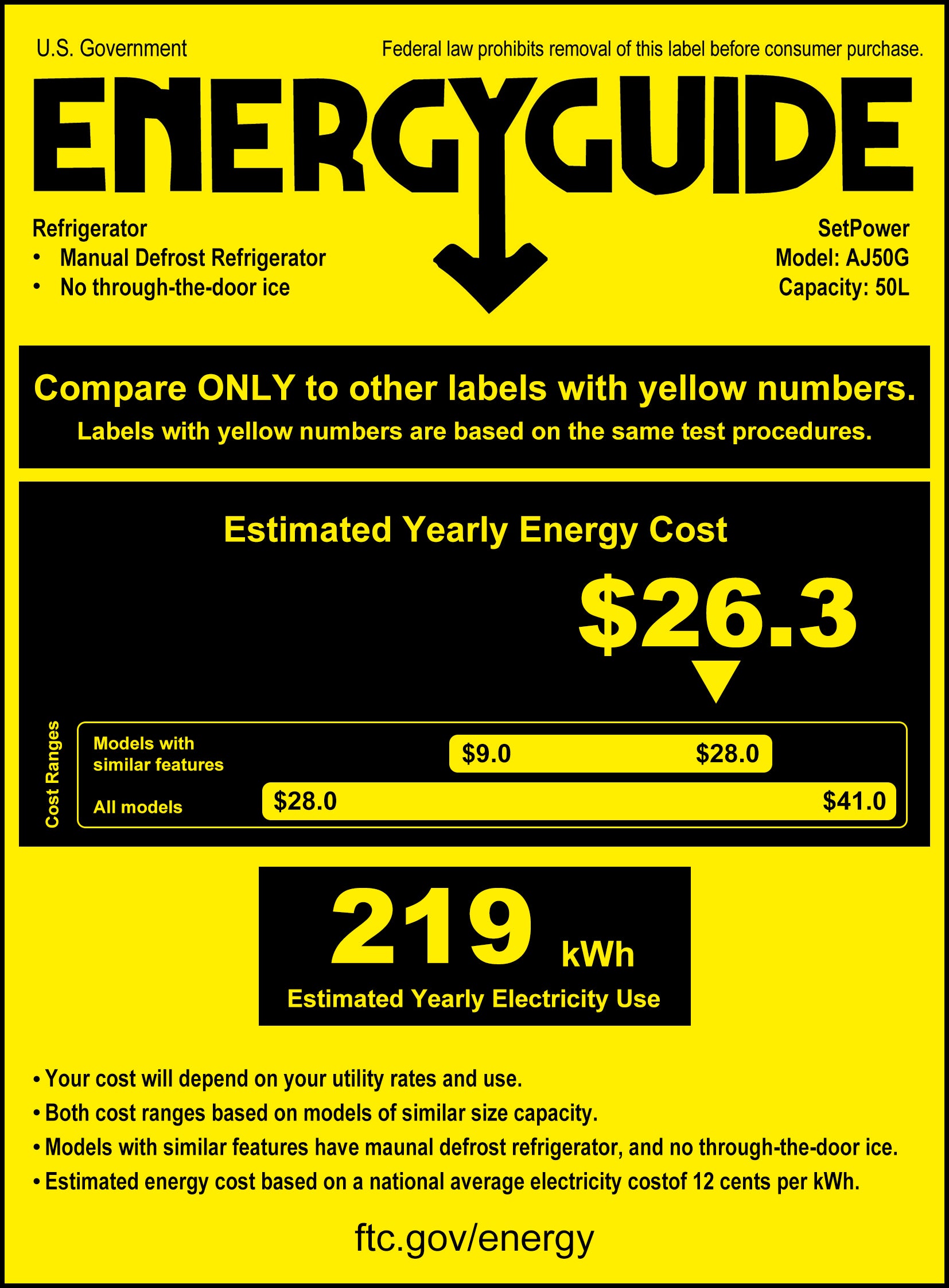According to our lab report, the Setpower AJ40 12v refrigerator uses only 0.532 kw.h/24h - Low energy use.