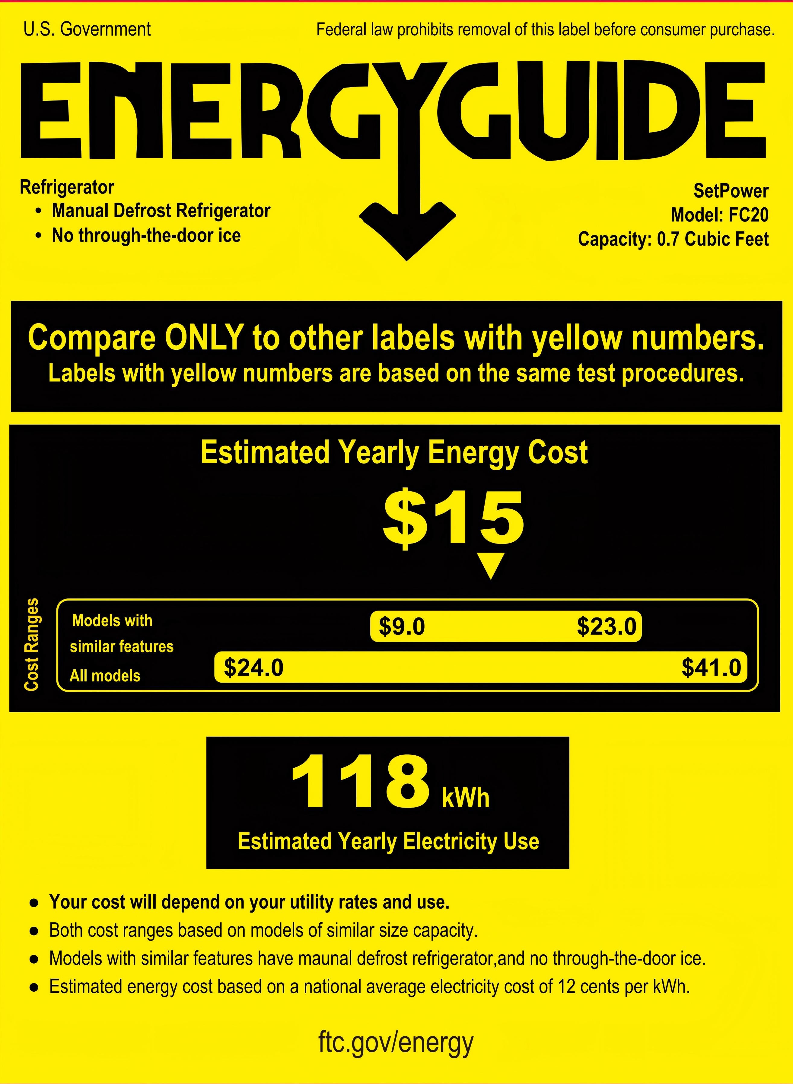 According to our lab report, the Setpower FC15 12v refrigerator uses only 0.304 kw.h/24h - Low energy use.