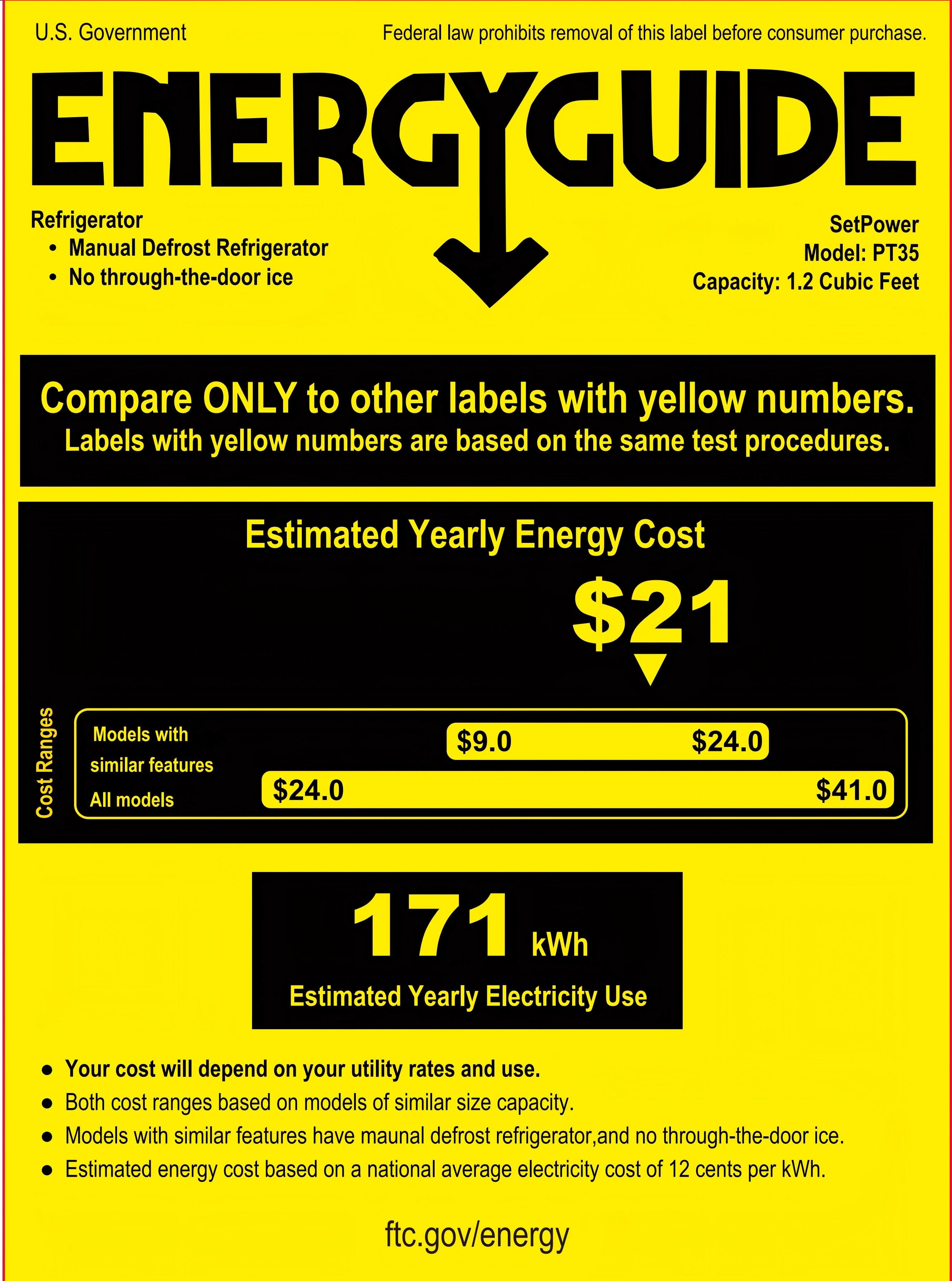 According to our lab report, the Setpower PT35 12v refrigerator uses only 0.469 kw.h/24h - Low energy use.