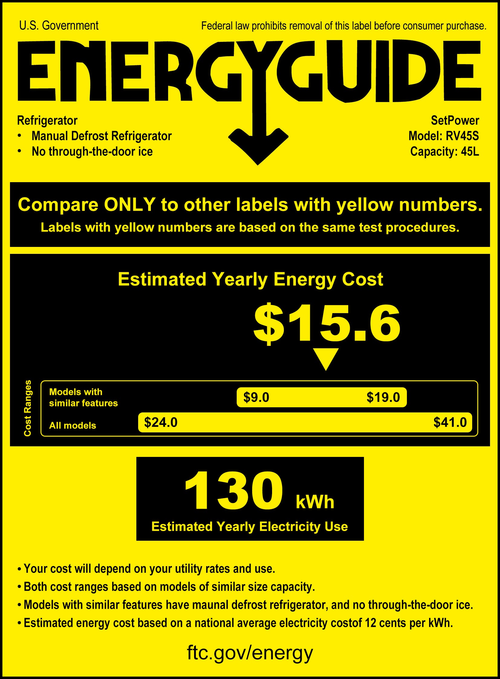 According to our lab report, the Setpower RV45S 12v refrigerator uses only 0.356 kw.h/24h - Low energy use.