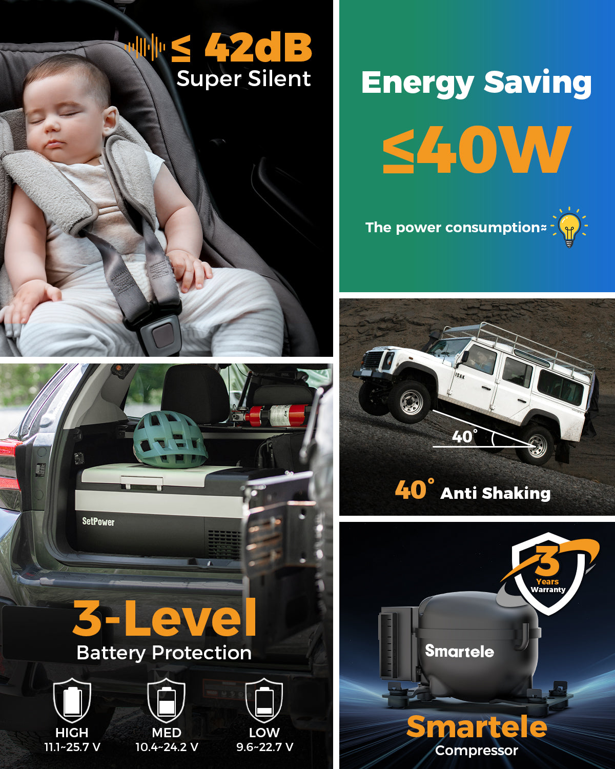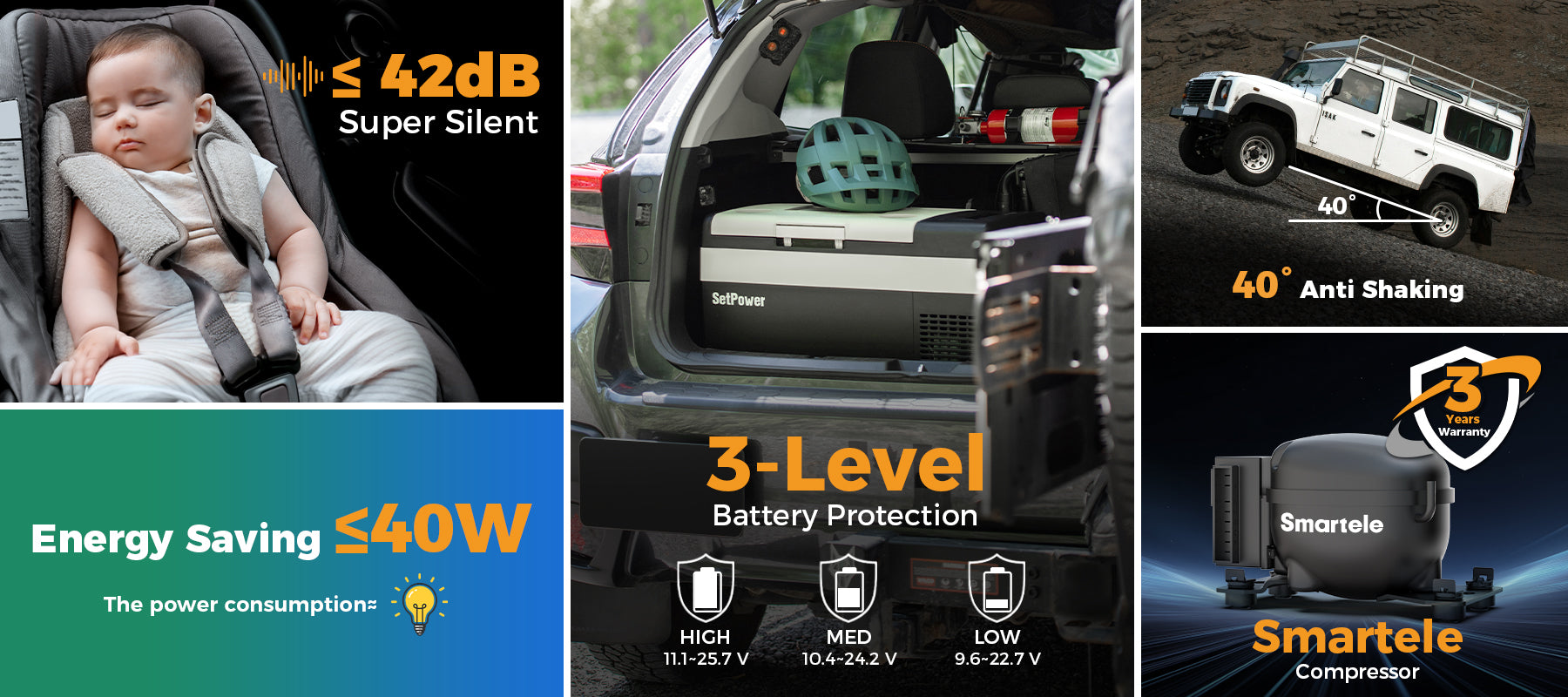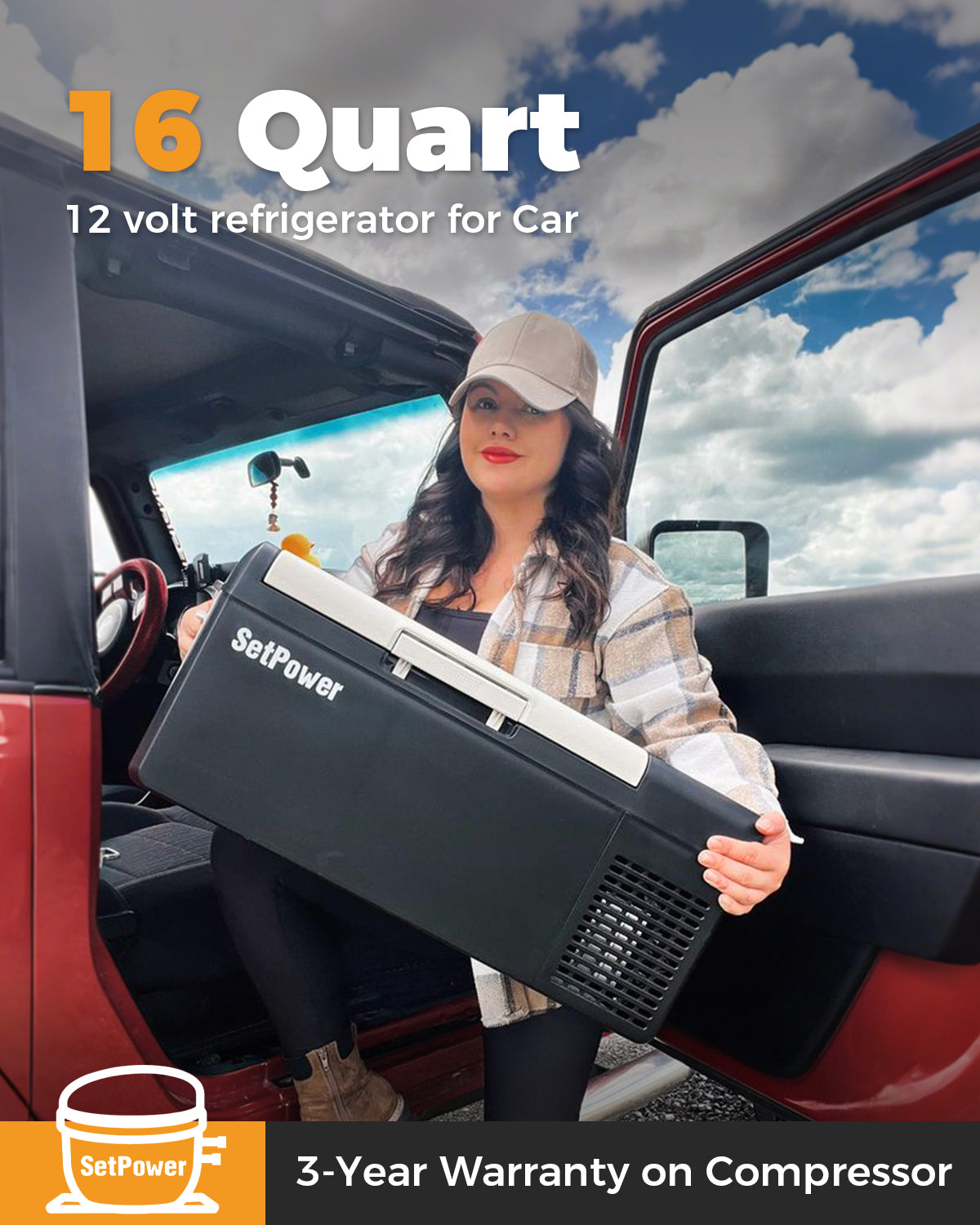 【GUARANTEE OF WARRANTY】Setpower 12-Volt Fridge Freezer Comes With a 3-Year Warranty on Compressor, a 12-Month Warranty on Other Fridge Parts. (Refrigerator included: DC Power Cord, AC Adapter, 4 Free Fixing Ropes & User Manual).