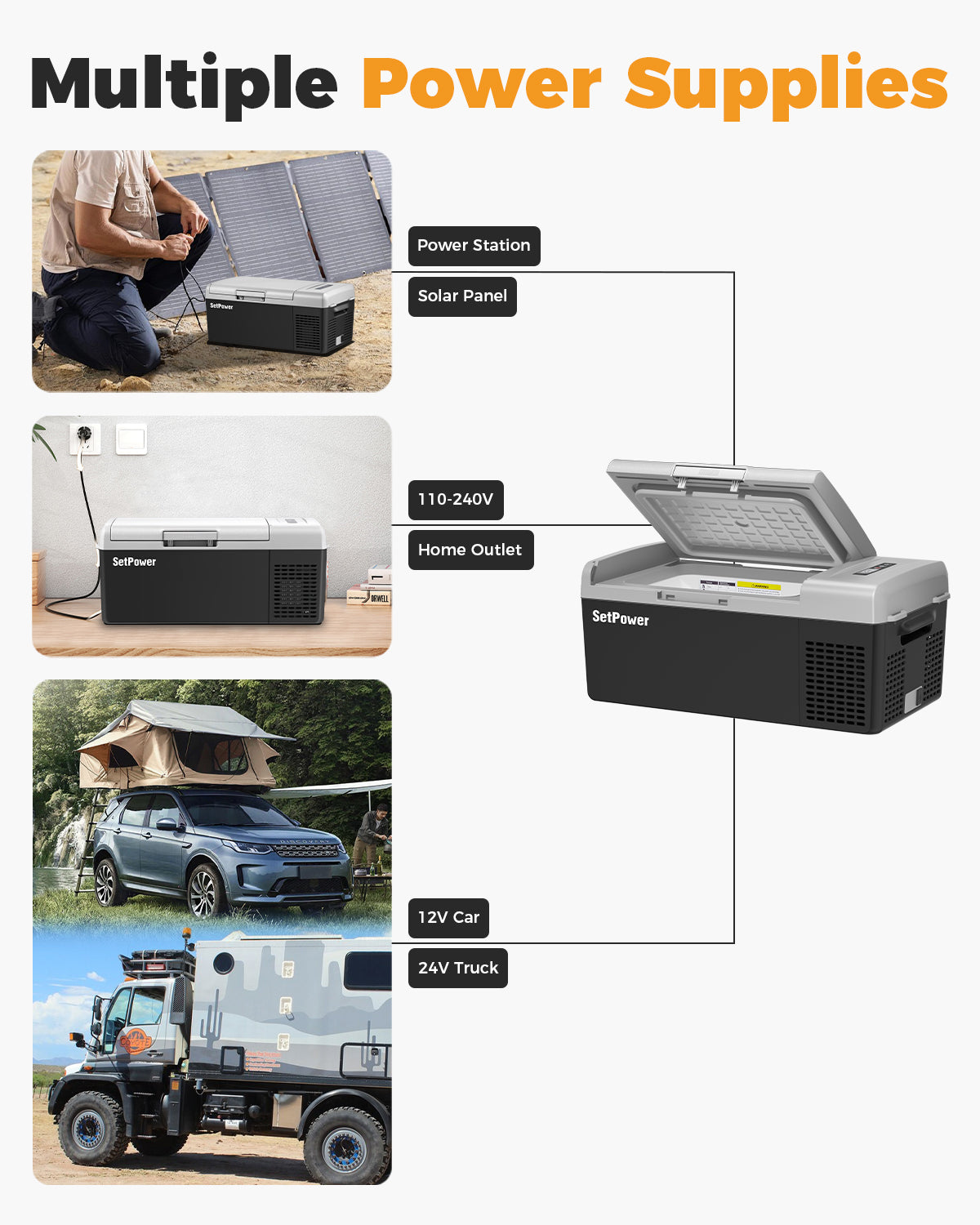Experience powerful coolingwith the SetPower FC20 car fridge — a 12V portable fridge for car and outdoor use. Itcools from -4℉ to 68℉, reaching 32℉ in 15 minutes, whileconsuming less than 40W. Compact, energy-efficient, and reliable, the SetPower fridge is the ideal companion for road trips, camping, and van life adventures.