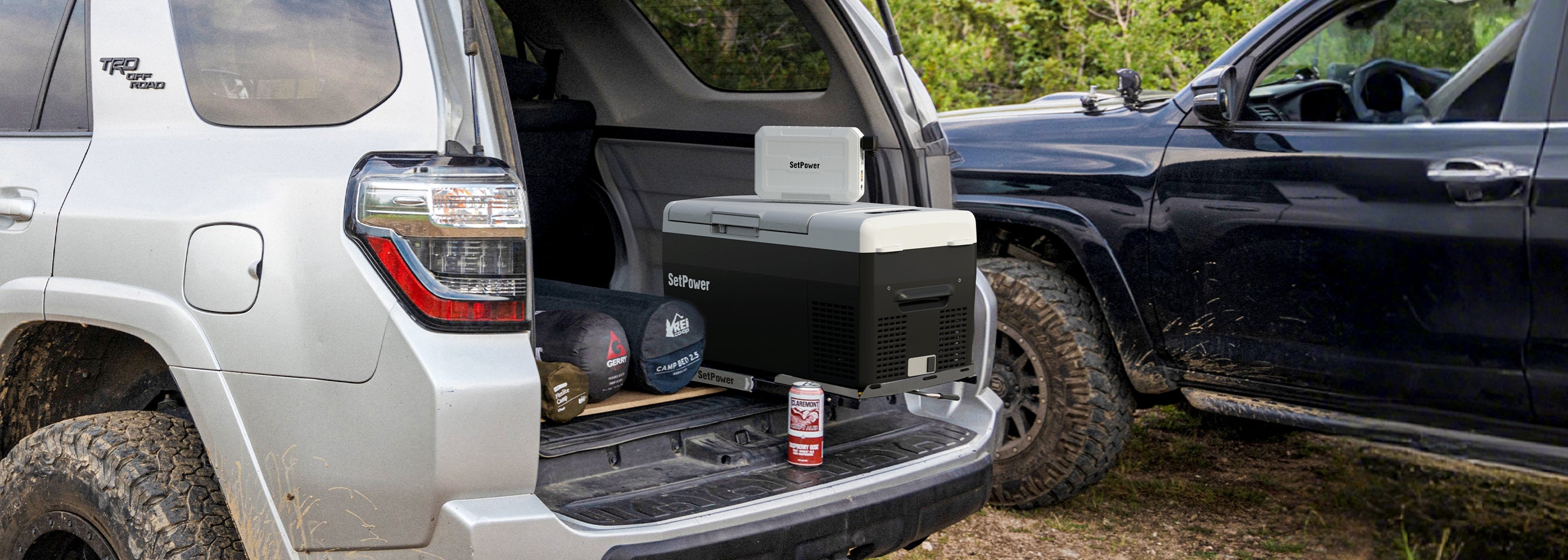 The SetPower FC15/FC20 small car refrigerator comes with a built-in cup holder, bottle opener, and fishing rod holder that attach directly to the car fridge, making outdoor life easier and more convenient. This small 12v fridge doubles as an electric cooler and SetPower portable refrigerator freezer, offering an energy-efficient car fridge solution and portable ice cooler for camping, fishing, and road trips.