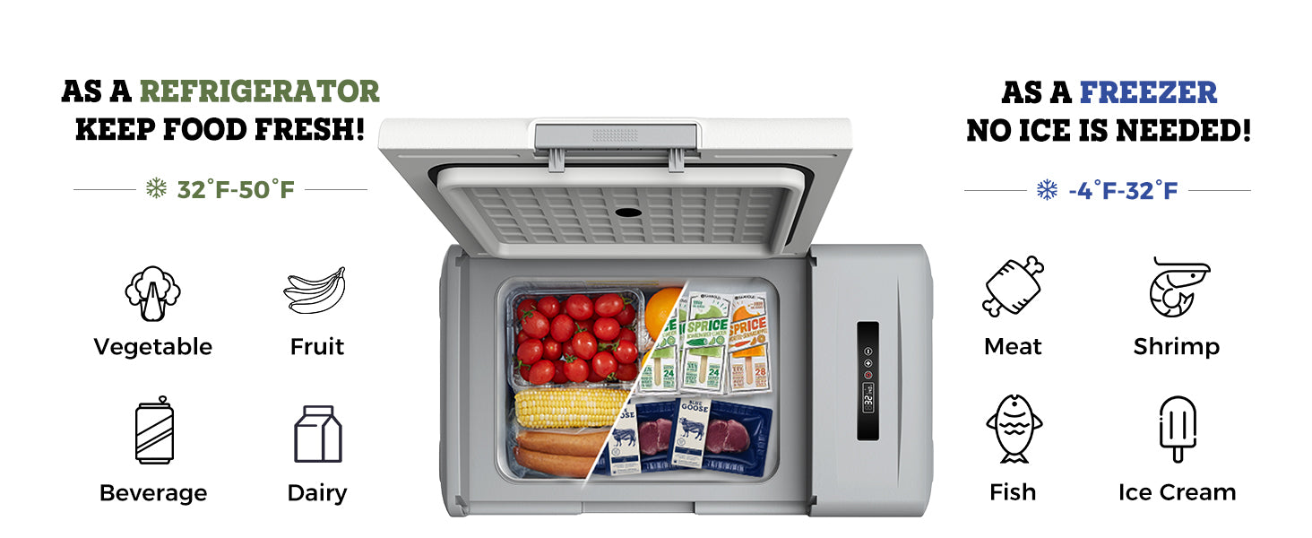 The SetPower MC20 is the perfect electric cooler for camping and road trips. With a wide temperature range from -4℉ to 68℉, it cools down to 32℉ in just 15 minutes. Designed as a electric cooler for car, it delivers powerful cooling with ultra-low energy consumption—under 40W per hour, and even below 25W once the temperature stabilizes. This electric cooler helps you save up to $200 a year by skipping the ice, making it an efficient and smart choice for outdoor living.