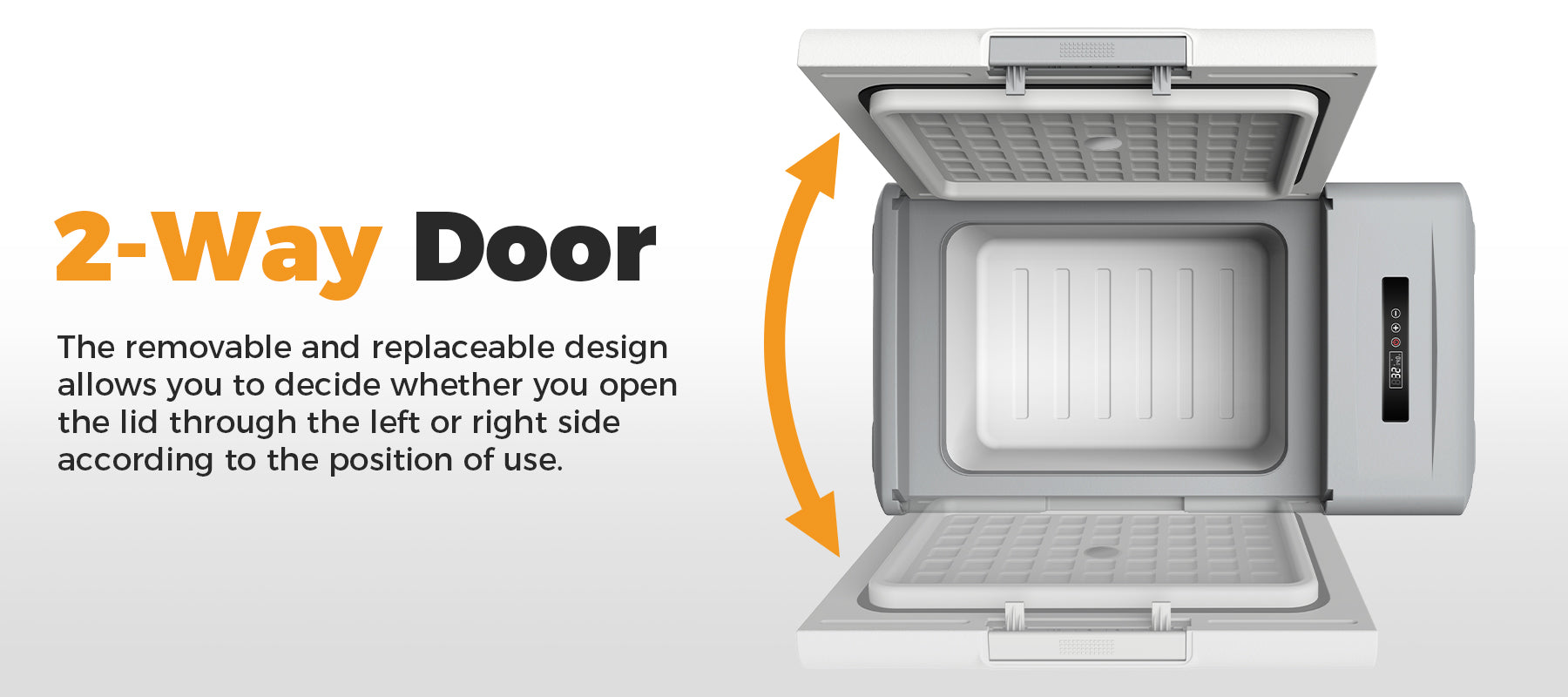 The lid's reversible design can be switched to either side for easy access in any vehicle setup. The lid is served as a cutting board for food preparation, but also features 4 round and 1 rectangular groove to securely hold drinks.