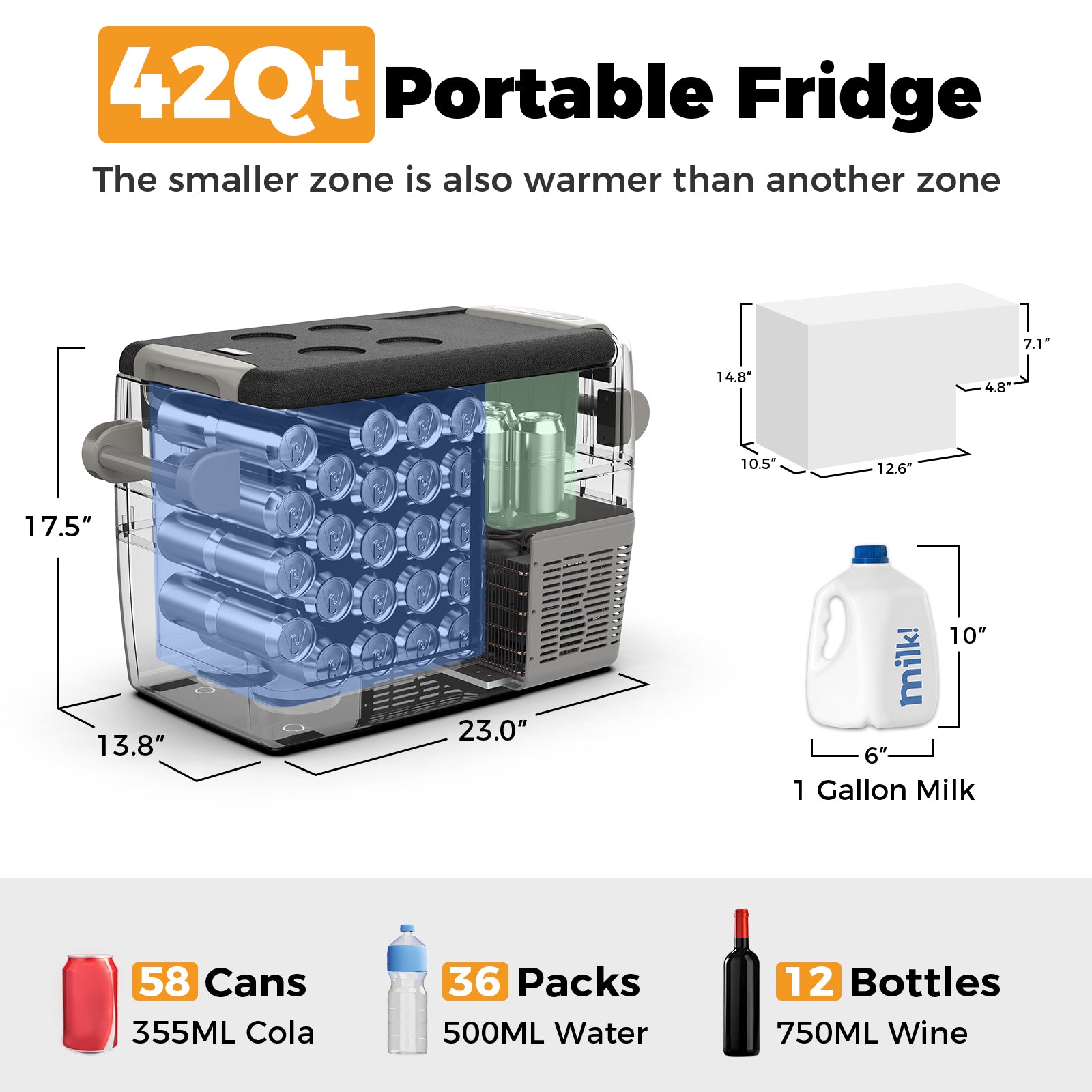 The SetPower AJ40 semi truck fridge features a compact dual-compartment design with generous capacity, holding up to 58 cans of soda. As the best fridge for heavy-duty trucks, this ice cooler and portable refrigerator keeps drinks and meals cold and easily accessible for long hauls and road trips.