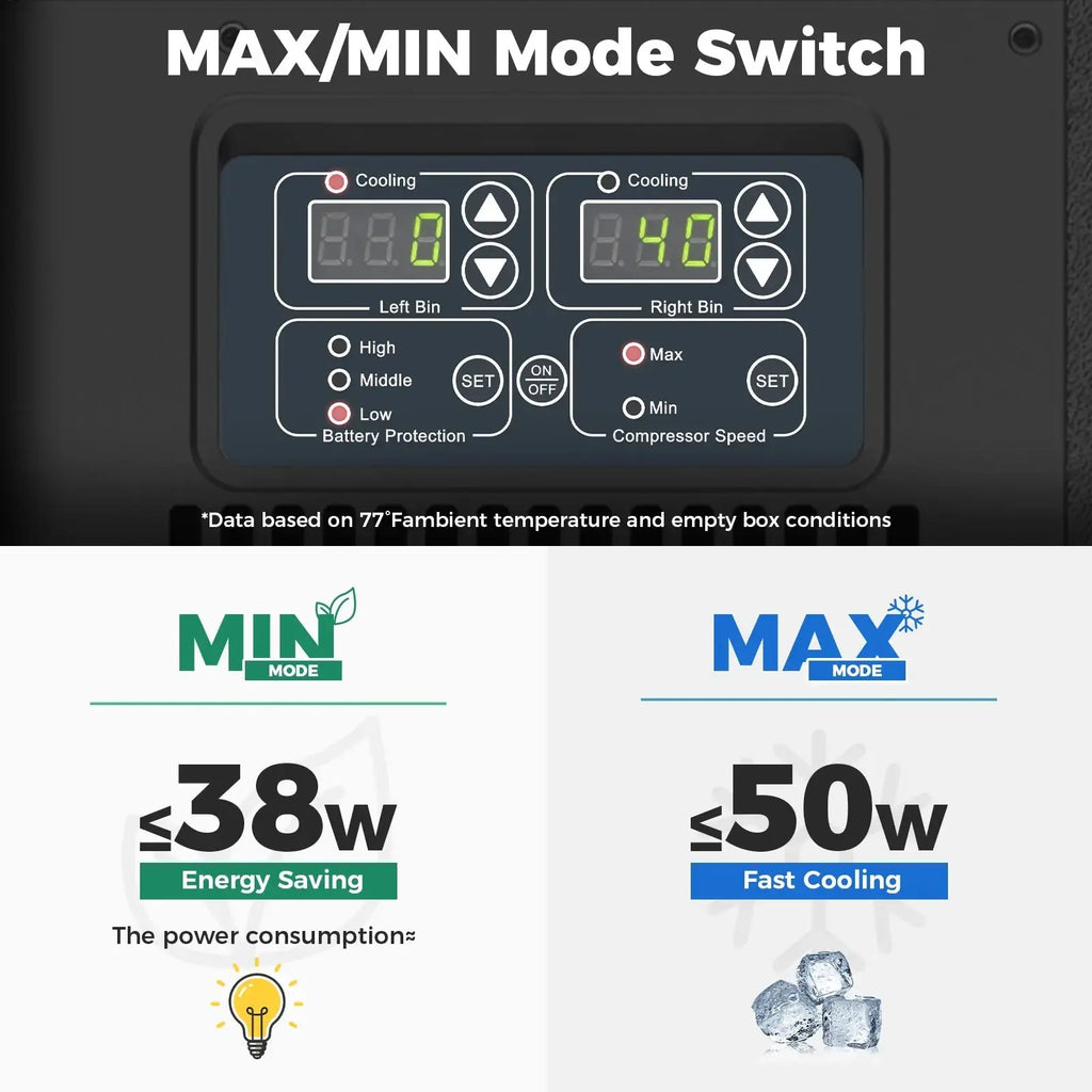 【≤38W MIN, ≤50W MAX – Power-Efficient Portable Refrigerator】
