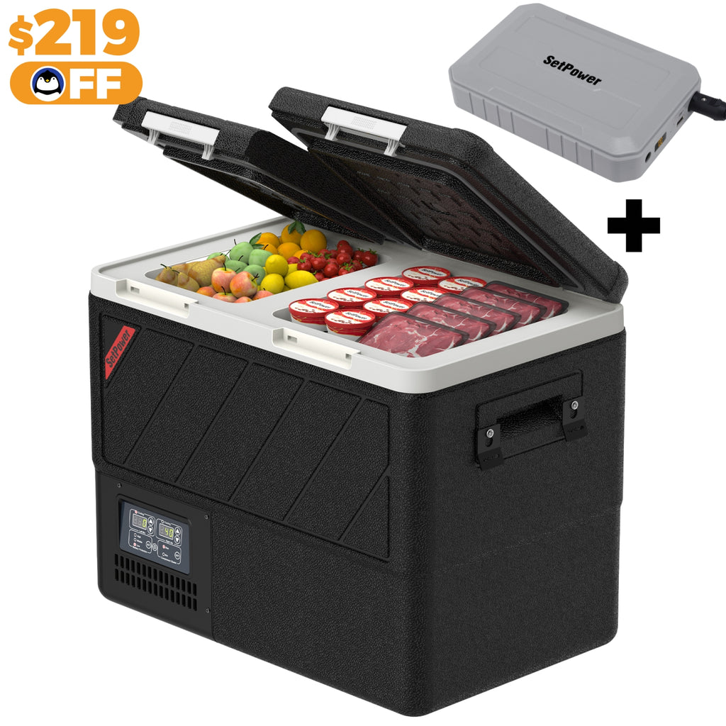 The SetPower DT45 is a true dual-zone car fridge freezer with independent temperature control and smart APP operation. Perfect 12V cooler for SUVs, trucks, and overland trips, this SetPower 12V refrigerator keeps food fresh and drinks ice-cold on every adventure.