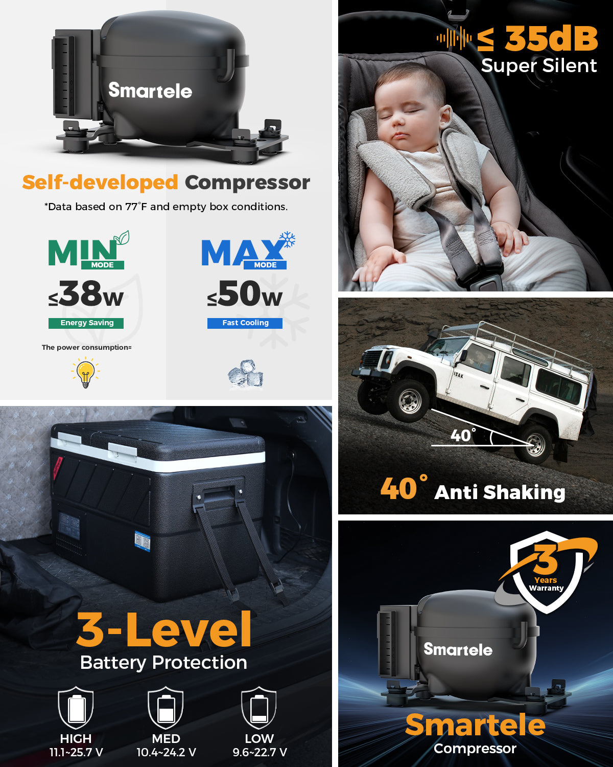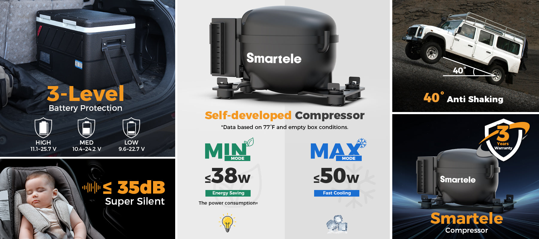 Built to Last, Backed by Trust! Setpower Car Freezer’s self-developed premium compressor delivers rock-solid performance with whisper-quiet efficiency. Enjoy worry-free cooling for years – 3-year compressor warranty + 1-year full-unit coverage. Electric Cooler that outlasts the journey, designed to keep your food fresh mile after mile.