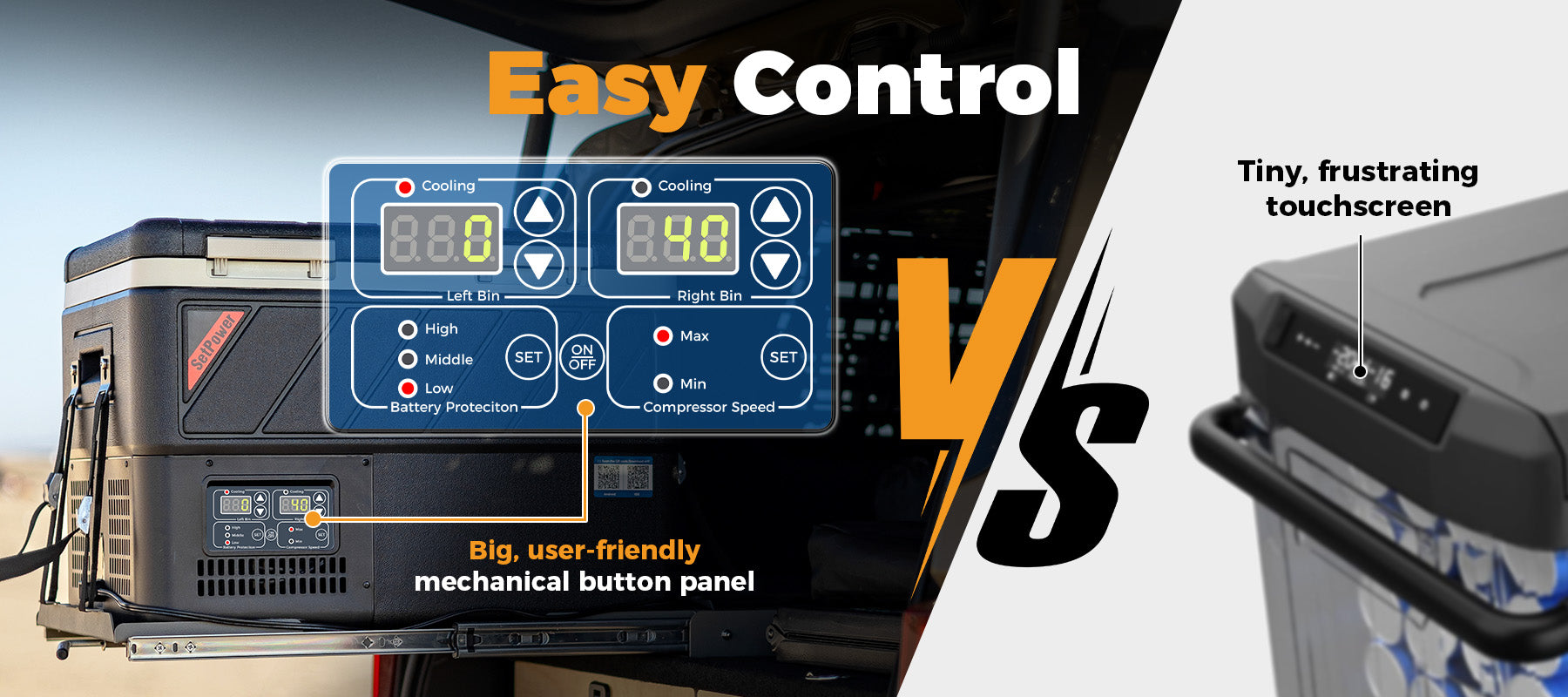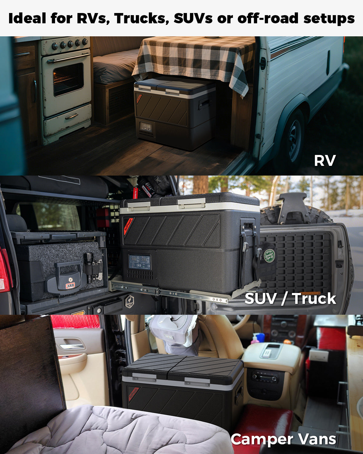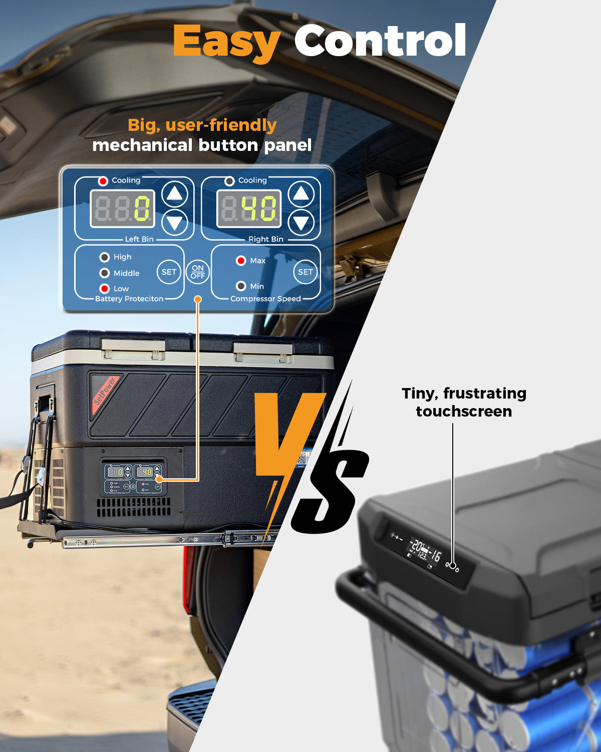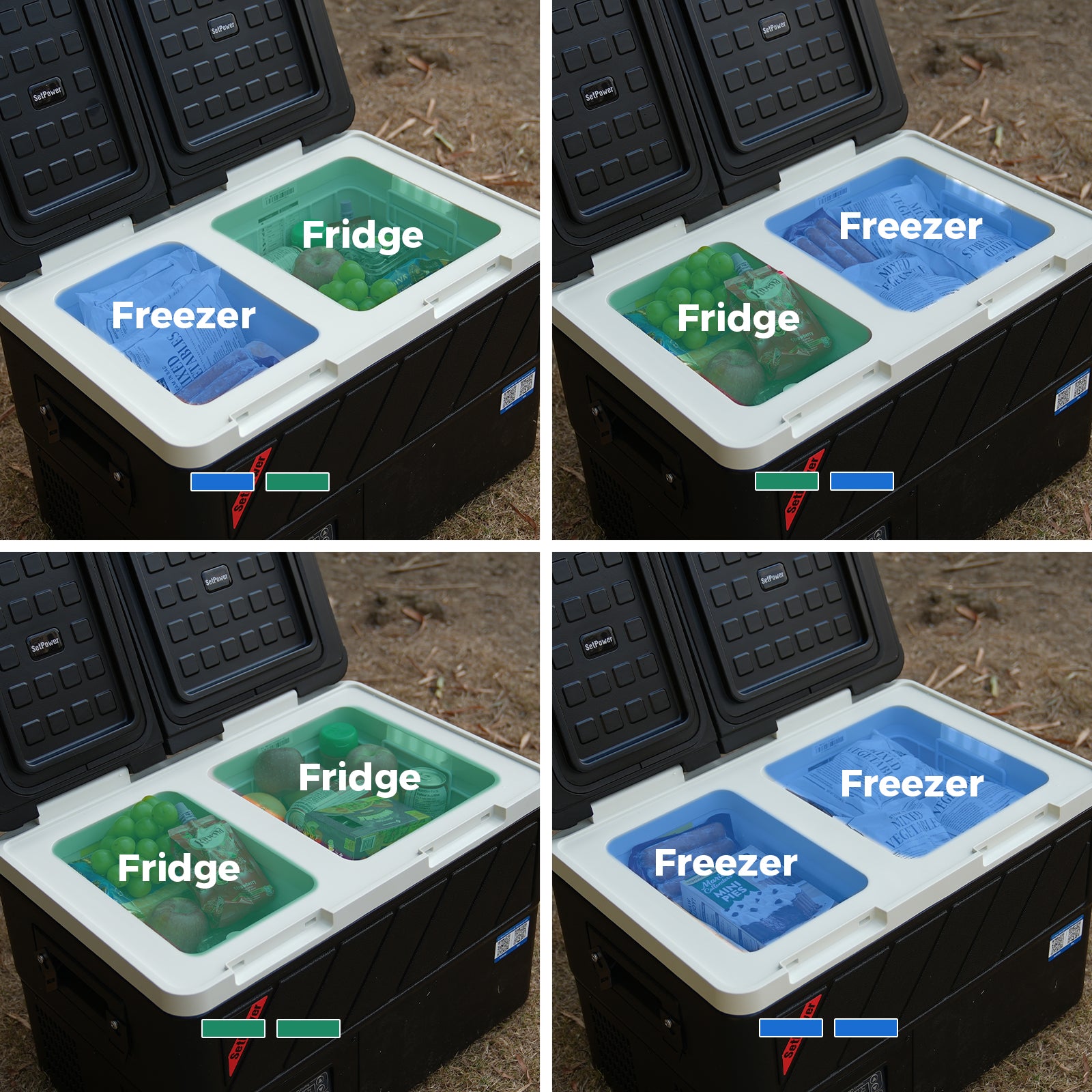 Setpower True Dual-Chamber Car Refrigerator - separate compartments for storing essentials like icy drinks and ice cream at the same time. This 12 Volt Refrigerator’s precision dual controls keep each zone perfectly chilled or frozen from -4°F to 68°F. No compromises, no cross-taste. Travel smarter, savor fresher.