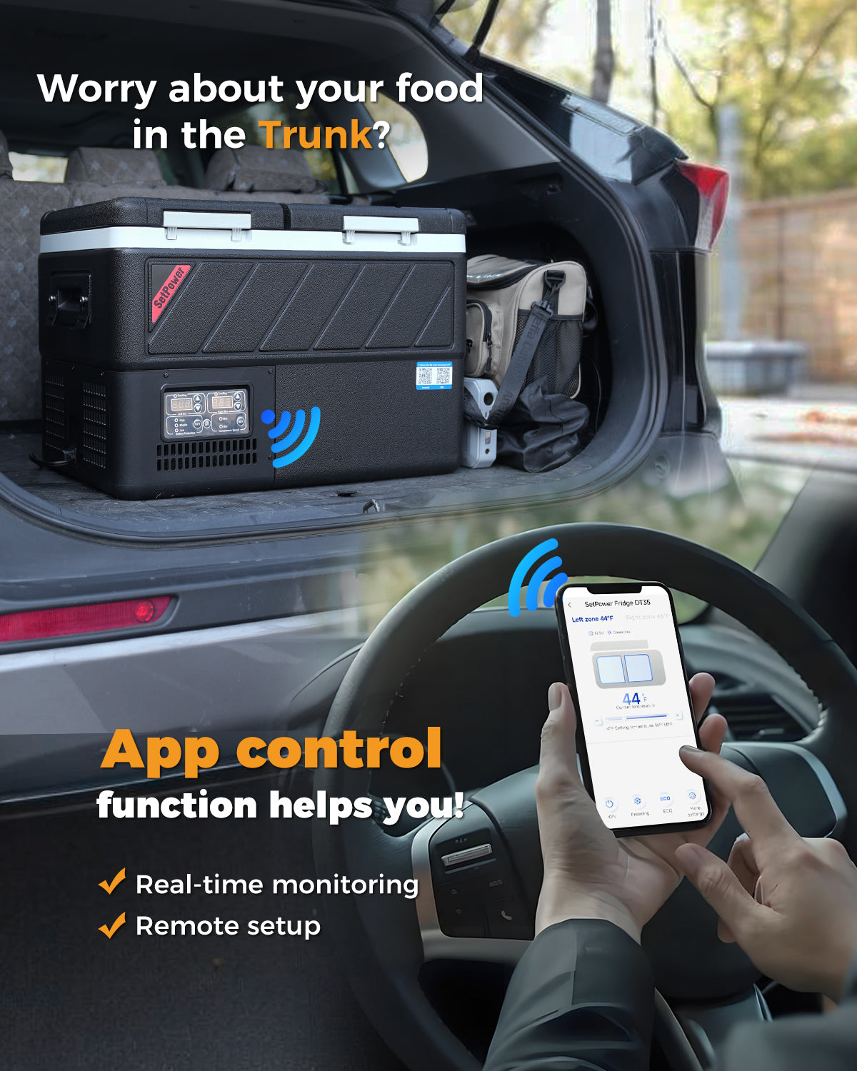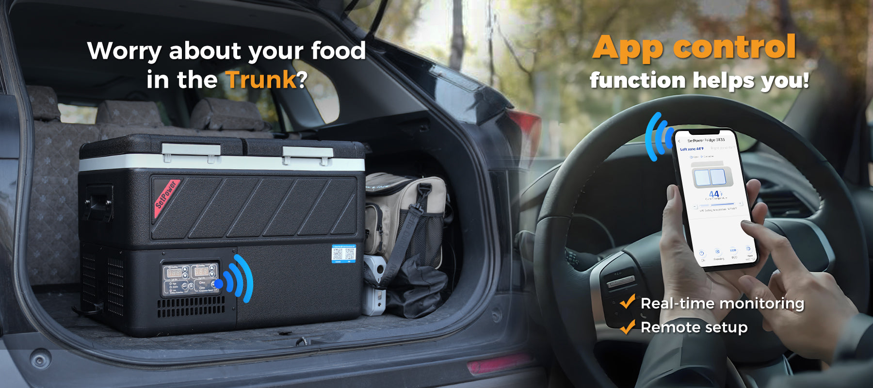 Stay Connected, Stay Chilled! Setpower Smart 12V Electric Cooler links to your phone via Bluetooth, letting you monitor temps in real-time and adjust settings remotely. Never worry about spoilage again – whether parked or on the road, your food stays perfectly fresh at your command. Tech-savvy cooling, always in sync.