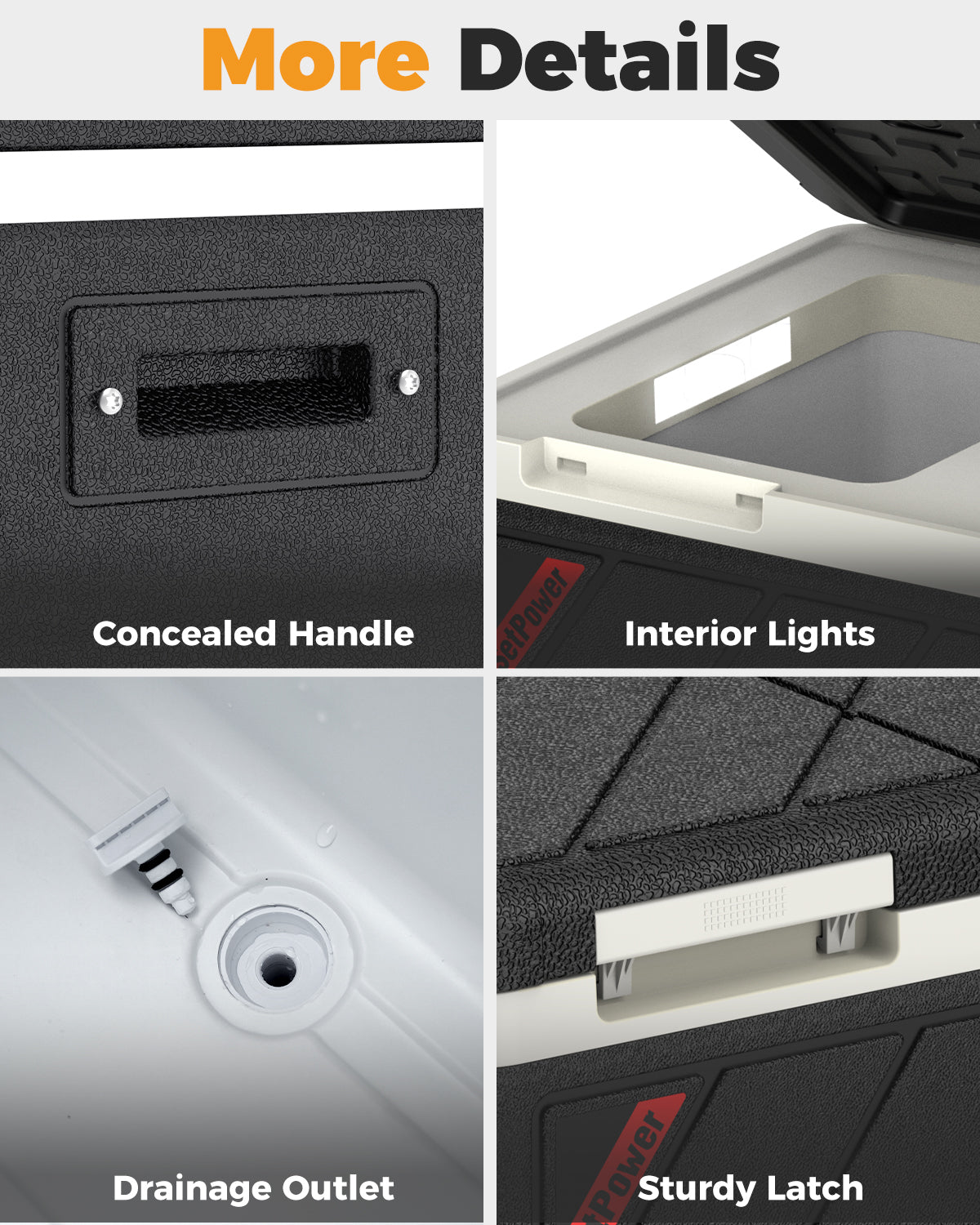 Humanized design, this Car Freezer comes with 4 fixing clips to secure the Car Refrigerator while off-roading. Built-in LED Light for easy visibility, plus an Easy-Drain Port for hassle-free cleaning.