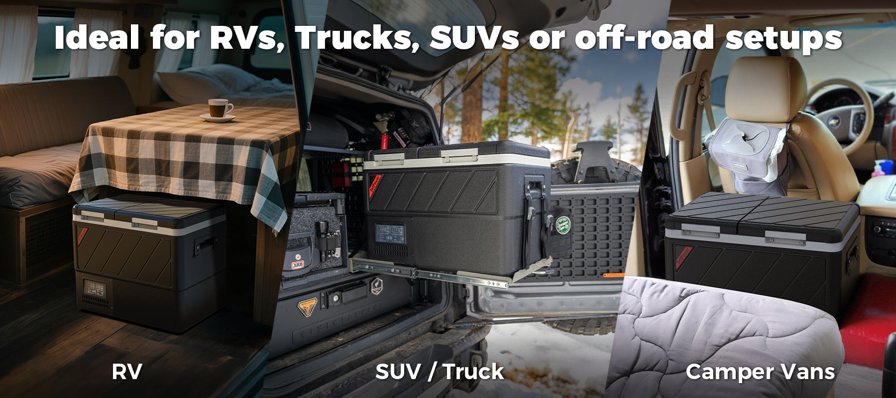 This 12v cooler comes with AC Adapter and DC Cable, so you can plug anywhere, cool everywhere! This Setpower Car Refrigerator switches seamlessly between home outlets and vehicle power. Perfect for camping trips, off-road adventures, trucking hauls, or RV living. Dual power supply, ultimate versatility – stay cool wherever life takes you.