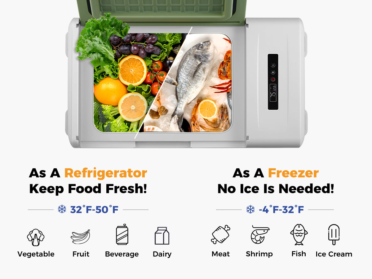 Nice portable fridge. Used recently to cover period while I was waiting for replacement main fridge. Kept a few food items and meds cool. System sips power (AC and DC-Power Station) and is pretty quiet in operation. I did find that the temp readouts are not very accurate when compared to calibrated standards but not off so much as to be a major problem. All-in-all great value for the price.