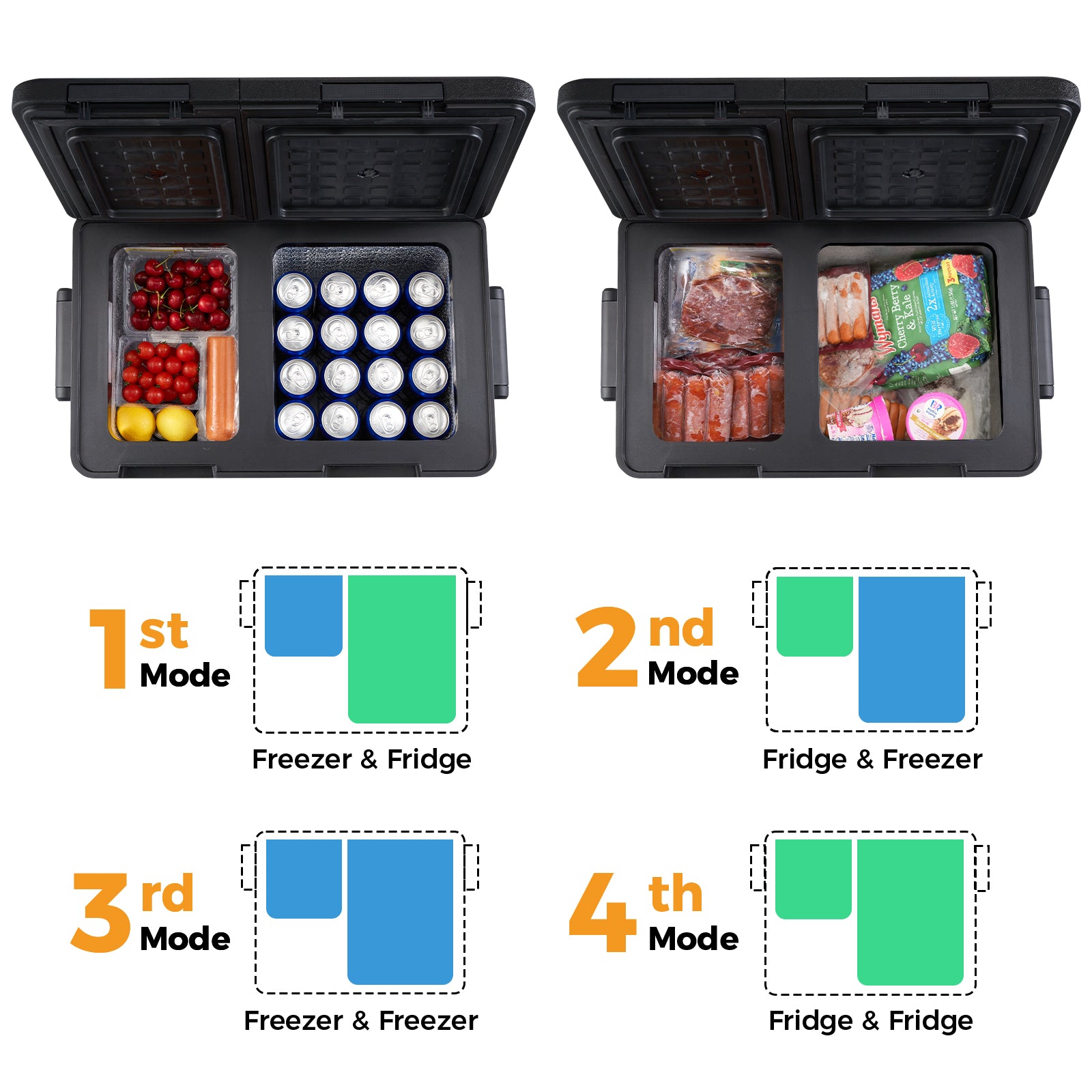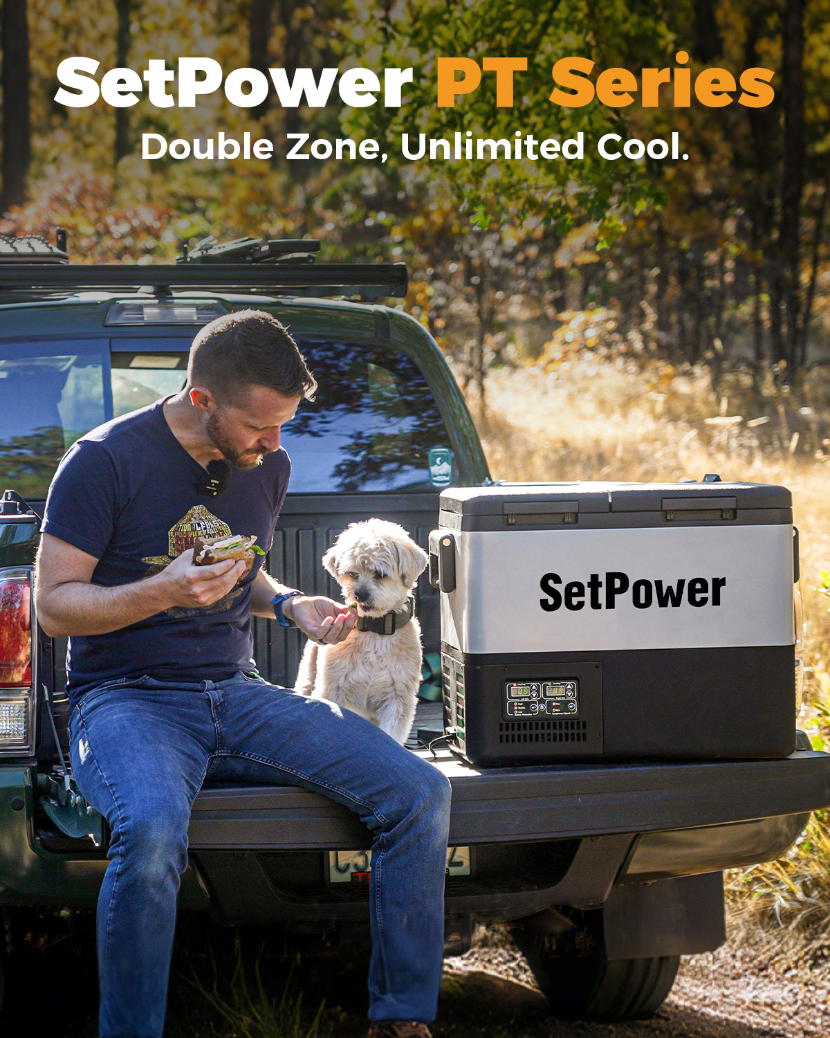 The SetPower PT35 is a dual zone 12V ice cooler with four cooling modes—refrigerator, freezer, or both at the same time. With flexible temperature control, you can keep fresh produce chilled, store ice and frozen meat, or split the compartments for maximum convenience. This portable fridge freezer is ideal for camping, RVs, trucks, and long road trips
