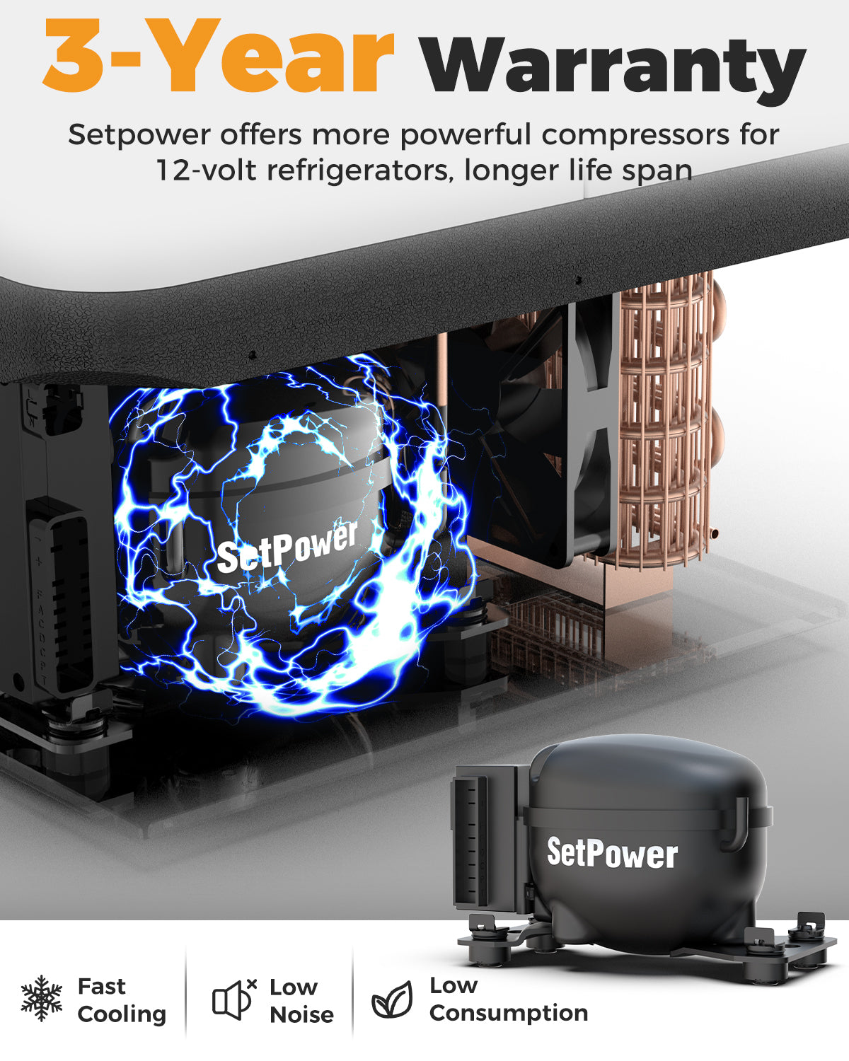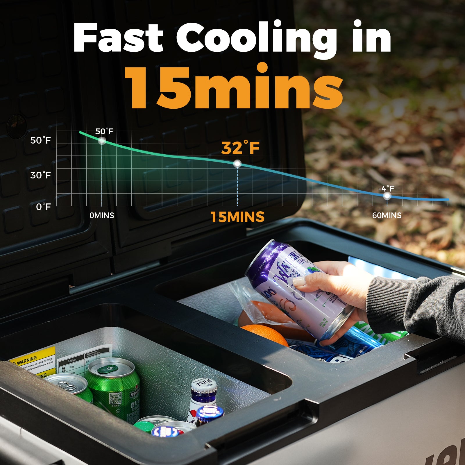 *Cooling Range From 0°F to 50°F, The 12 Volt Fridge Freezer Temperature can drop quickly in 15 mins. Say goodbye to ice with this SetPower iceless cooler! No need for bulky ice packs – enjoy reliable, efficient cooling with setpower’s advanced technology.