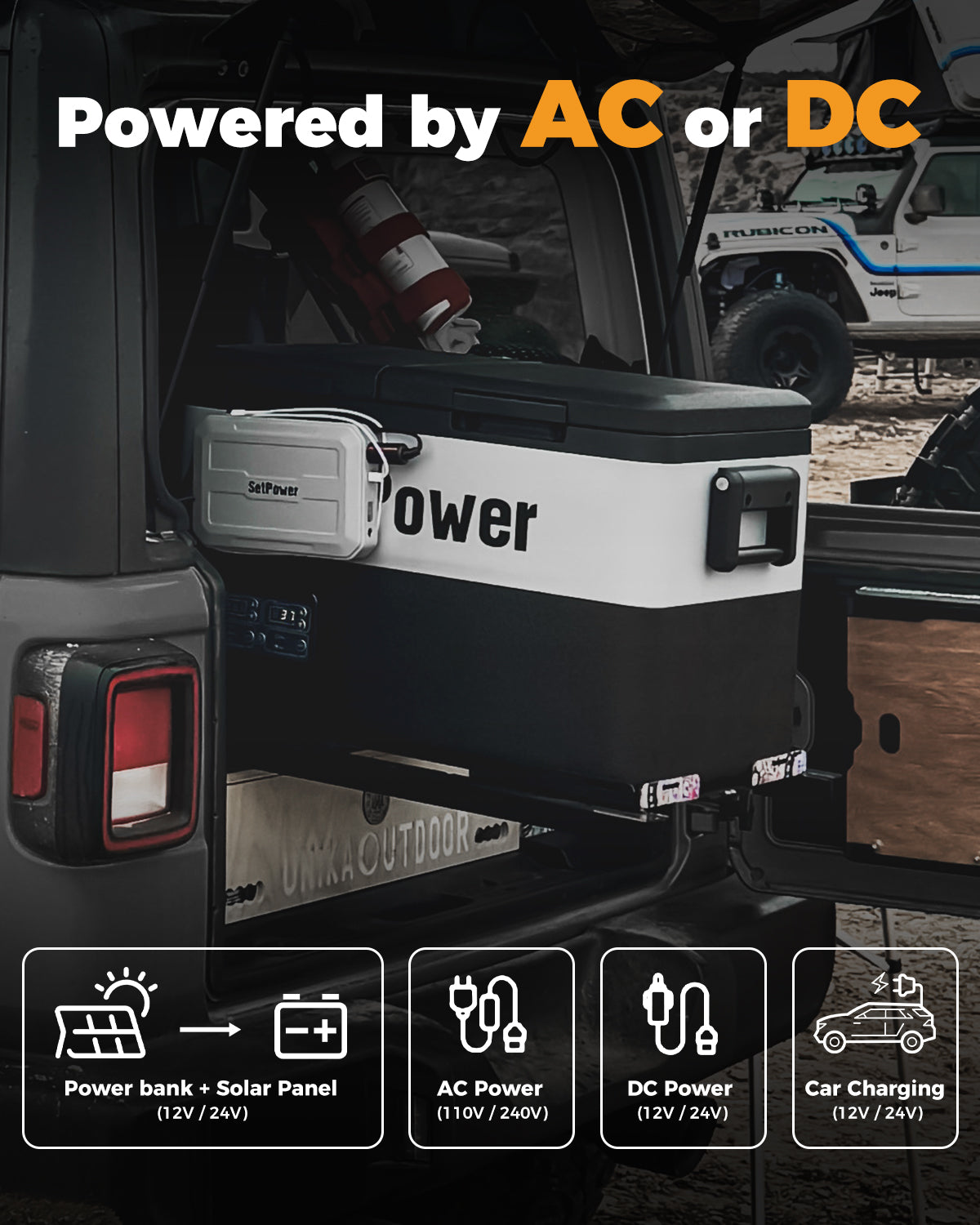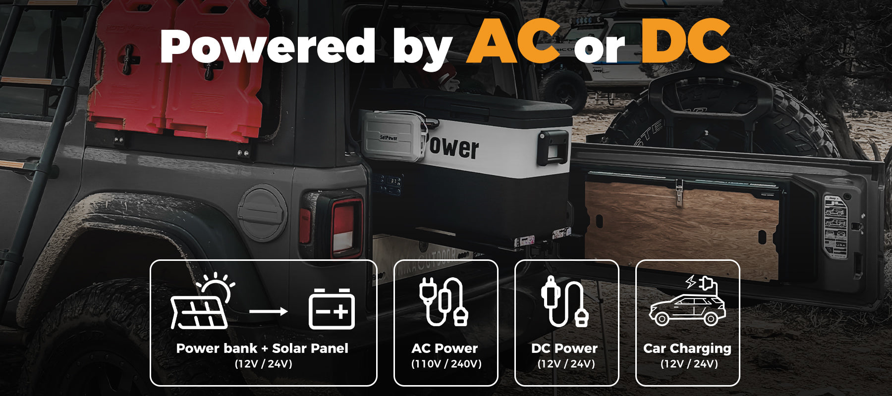 SetPower PT35 dual zone 12V refrigerator works as a car fridge and portable freezer, keeping drinks cold and food frozen on any trip. Choose the SetPower 12 volt refrigerator freezer for flexible storage, perfect for outdoor travel, family camping, and overlanding