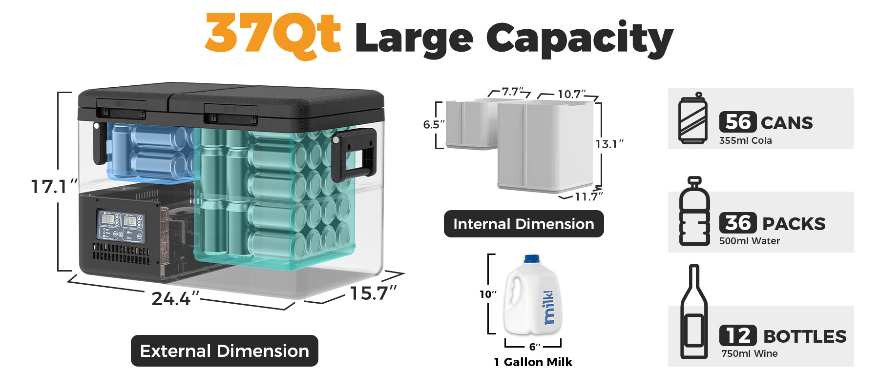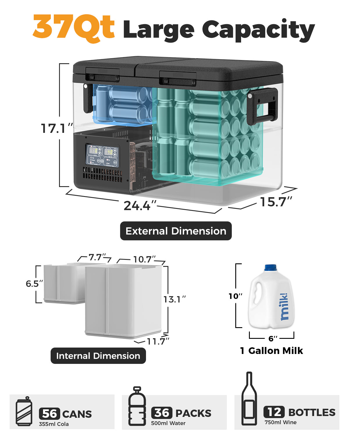 • 37Qt PT35: 24.4*15.7*17.1inches, 38lbs